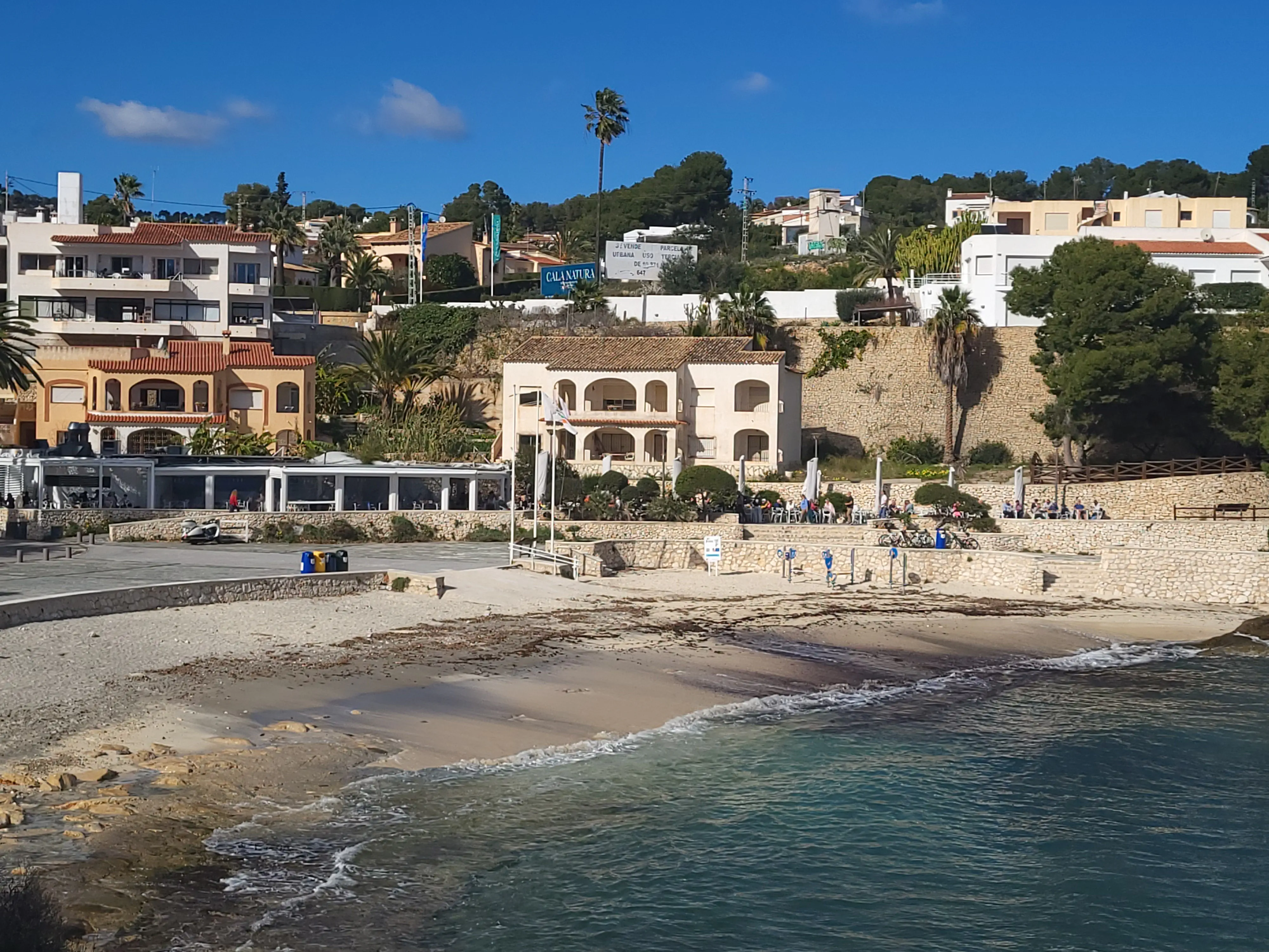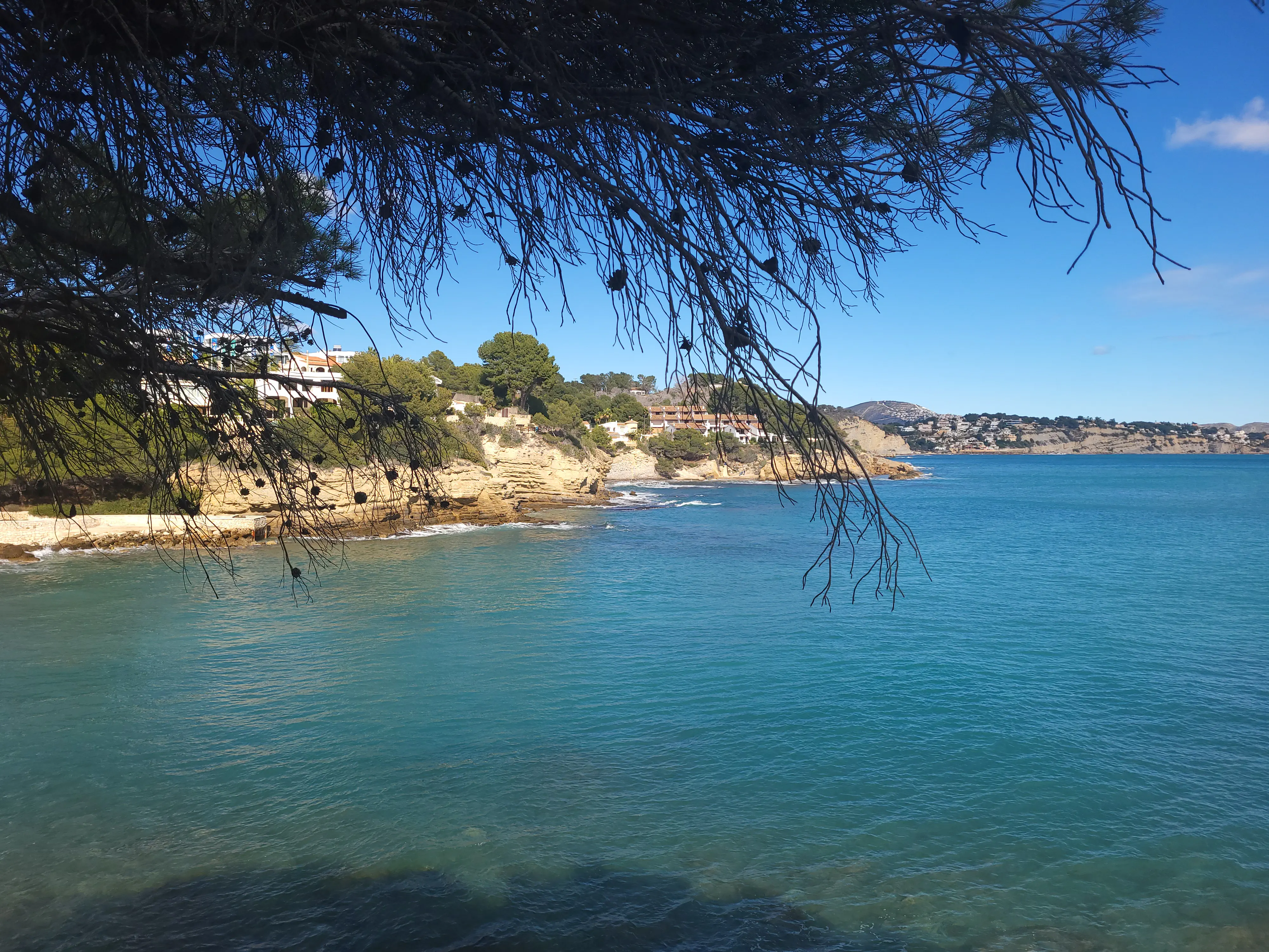 The full route from La Fossa to the northern Benissa coves (like around Les Bassetes or beyond to La Fustera) clocks in around 4–6 km one way, depending on how far you wander – a relaxed hour or two at a chilled pace, with barely any real climbing. Turn back whenever you fancy, or arrange a taxi at the far end for that effortless finish. And yes, La Fustera is a total dream spot along the way: a sweet mix of soft sand and pebbles, calm turquoise waters, beach-bar energy, and that laid-back feel where you can grab an ice-cold tinto de verano, sink into a lounger, and toast the sunset.