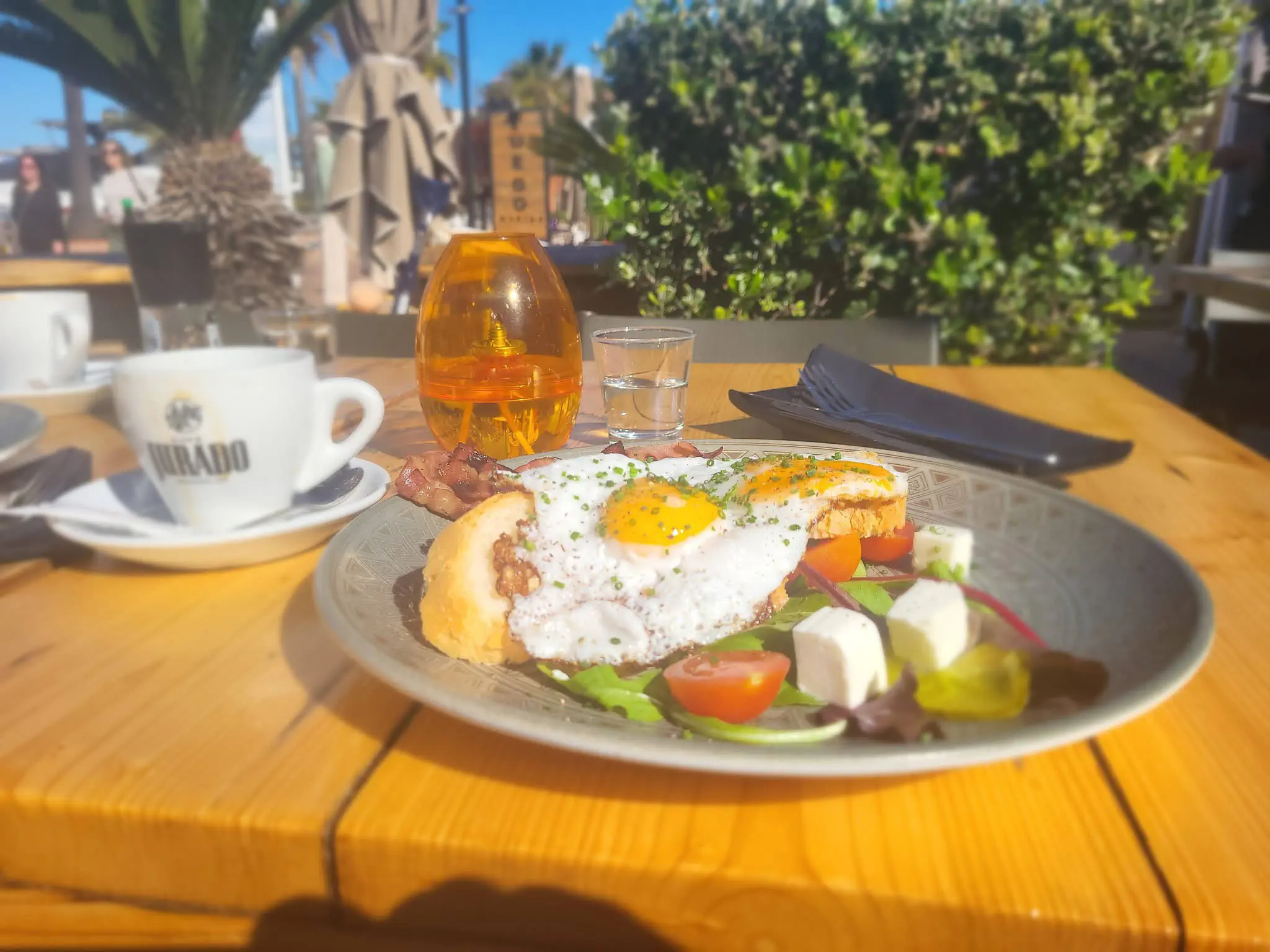 Breakfast called our names, and we answered at Basta — and let me tell you, it did not disappoint! Nestled right on the marina with killer views of the boats, Basta served up a fabulous breakfast. Think fried eggs, salad, pickles, perfectly brewed coffee, and a delicious €18 special with a cheeky glass of cava if you’re feeling fancy. The vibe was relaxed yet stylish — you cannot beat their friendly service. We lingered over our plates, watching the marina come to life (and the Balearia ferry arriving with its loud, cheerful warning hoots as it entered the harbour), already feeling that holiday glow. Absolute fab start to the day!